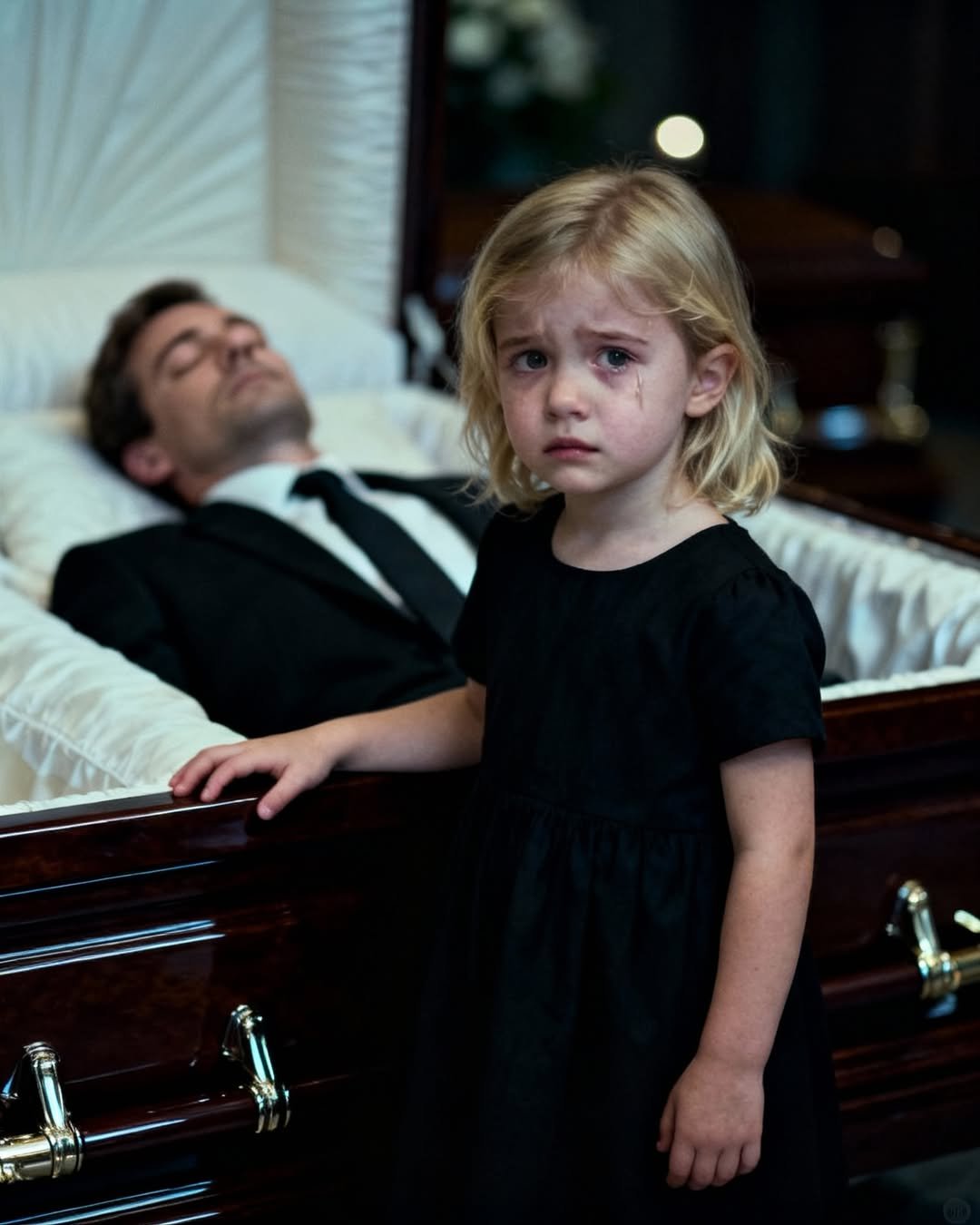 Tegen de avond kleurde het kaarslicht de salon amberkleurig. Er hing een ongemakkelijke sfeer, en de blikken waren meer op het kind gericht dan op de kist. Ze leunde tegen het gepolijste hout, haar kin erop rustend alsof ze verwachtte dat haar vader elk moment zou ontwaken.