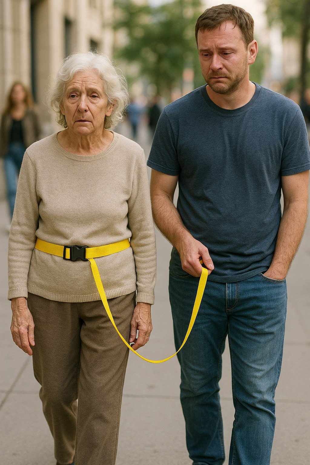Toen Daniel’s moeder zijn naam begon te vergeten, kocht hij een felgele lijn en vertelde aan iedereen dat die voor een hond was, maar de waarheid was dat de lijn voor haar was.