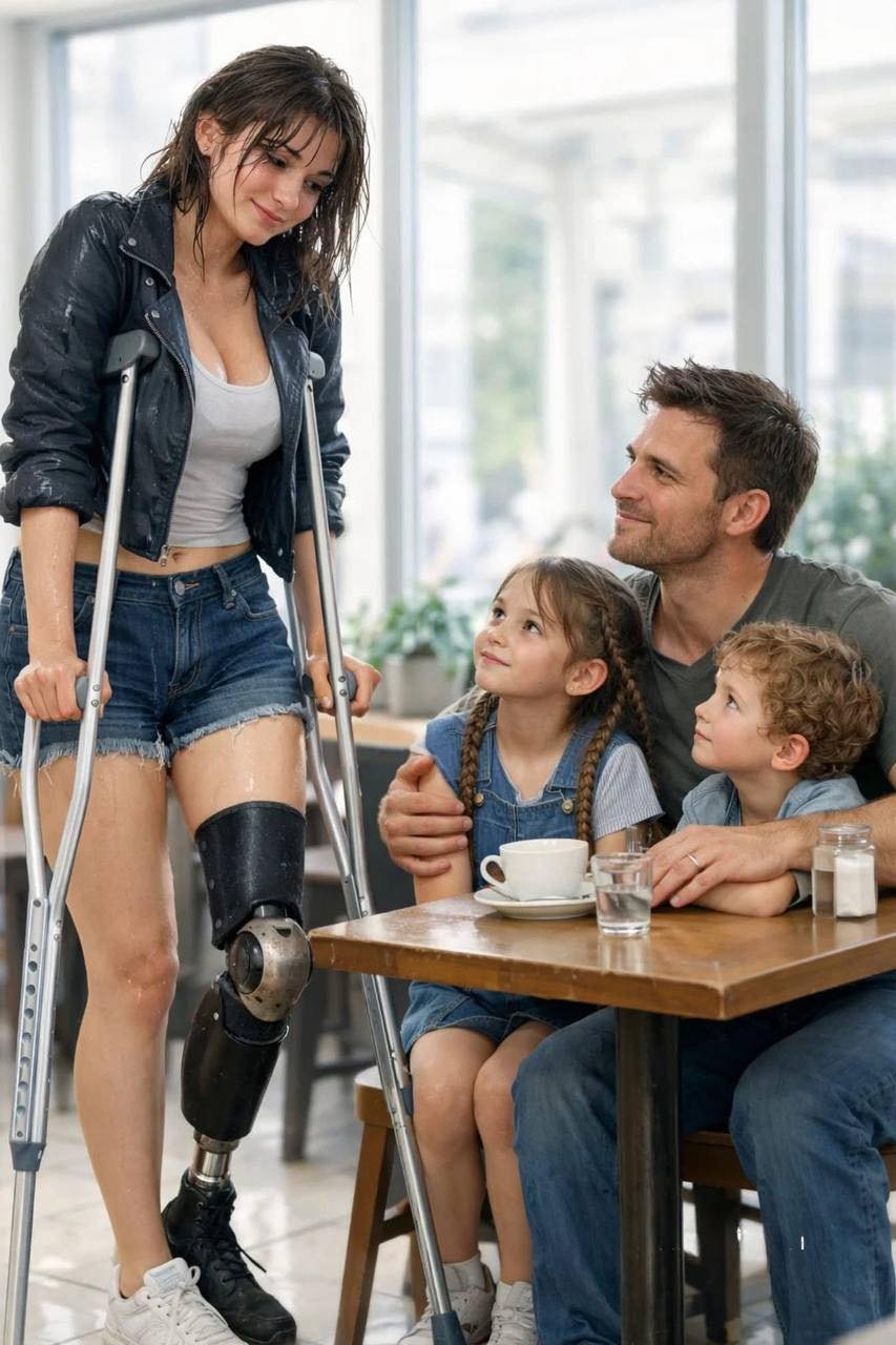 Hij schoof zijn stoel naar achteren, waardoor er ruimte ontstond—echte ruimte, niet zo’n ruimte die je het gevoel geeft een last te zijn. Zijn dochter glimlachte verlegen. Zijn zoon staarde naar de stickers op Mara’s krukken alsof het schatten waren.