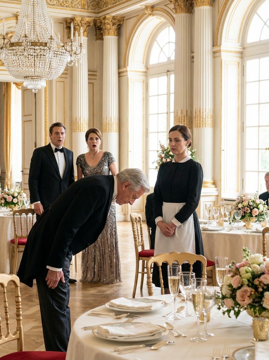 Sterling trok zijn stropdas recht. Toen, onder het collectieve gesnik van driehonderd mensen, maakte hij een buiging. Geen knikje. Een diepe, negentig graden buiging van absolute onderdanigheid.