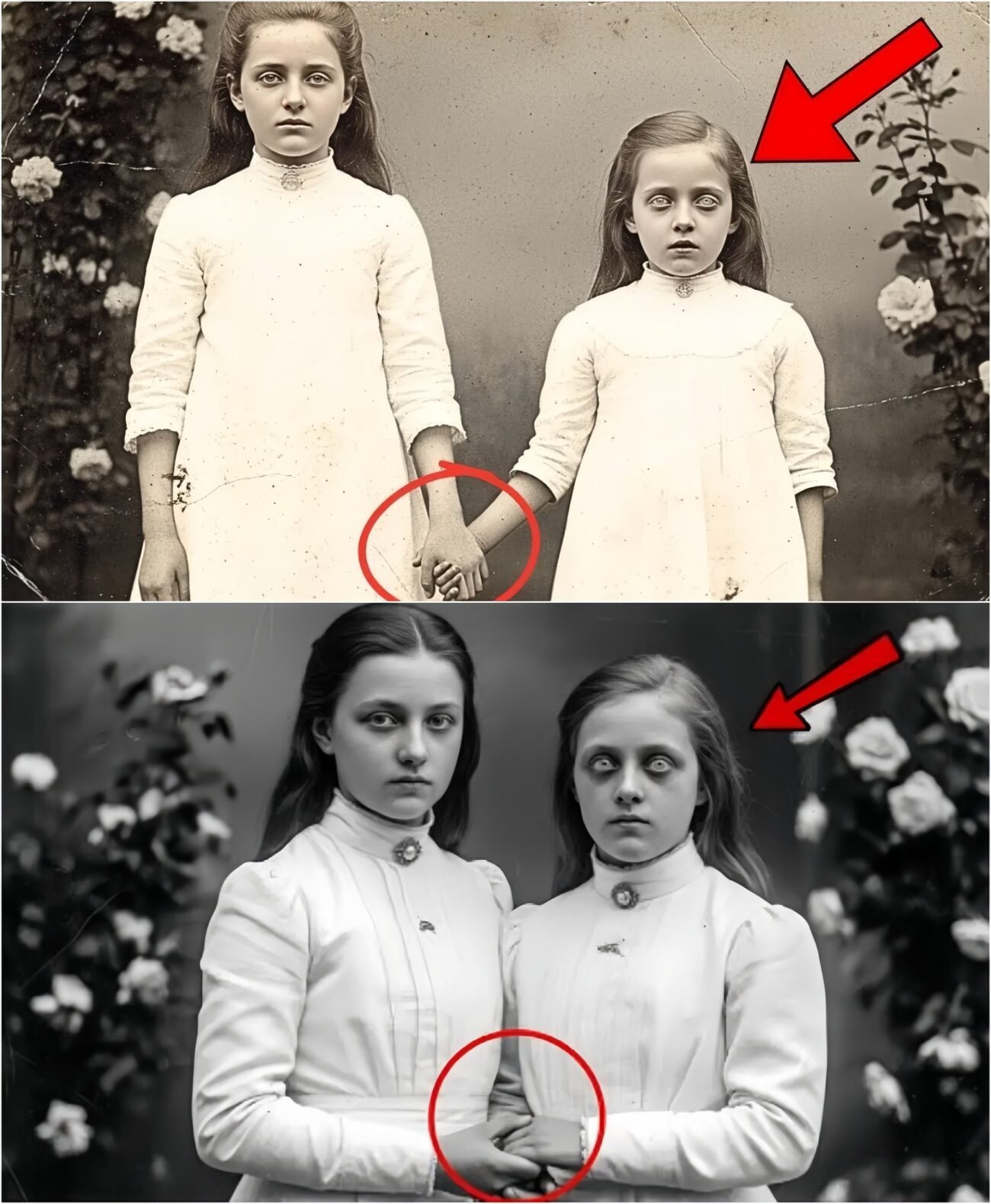Deze foto uit 1895 van een meisje dat de hand van haar zus vasthoudt, leek ogenschijnlijk normaal, totdat restauratie een verrassing aan het licht bracht.