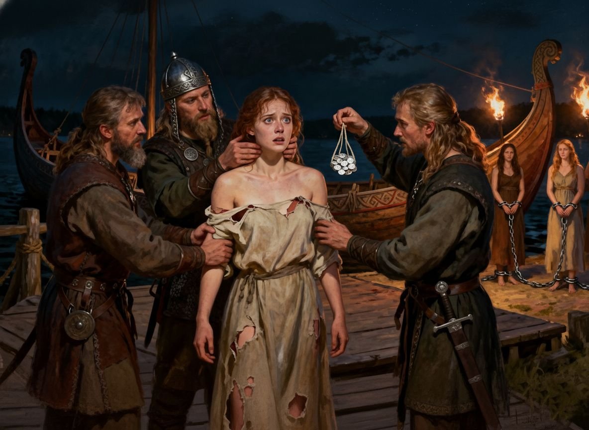 Niet altijd een enkele “slavenmarkt” zoals in films—soms een havenhandel, een privédeal, een overdracht tussen kooplieden. Gevangenen konden keer op keer worden uitgewisseld, reizend over een netwerk dat zich ver buiten Scandinavië uitstrekte. De Vikingwereld was verbonden met bredere handelsroutes, en mensen konden over grote afstanden worden verplaatst, ver van elke kans op thuis.